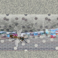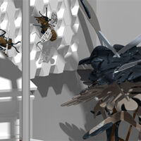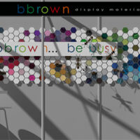 This was an initial response for a creative designer led brief that could bring together the very different product ranges and identities of two companies within the same group. It was a continuation of previous year's designs focus on the creative applications of products. The concept evolved around a slogan 'Bbrown...Be busy', a simple statement with a multitude of connotations. I wanted not only to involve as many sample swatches as possible on the cascading 'hex wall', but also to suggest sculptural application, cnc processing and make the whole impression dramatic, almost theatrical. The 'hive' housed sample books and 3d printed business card bees, and the giant slot-together plant in the corner was clad in metallic Muraspec vinyls, glitters and Rowlux producing a futuristic tech feel, and the bees became machine like in gold and black glitter.